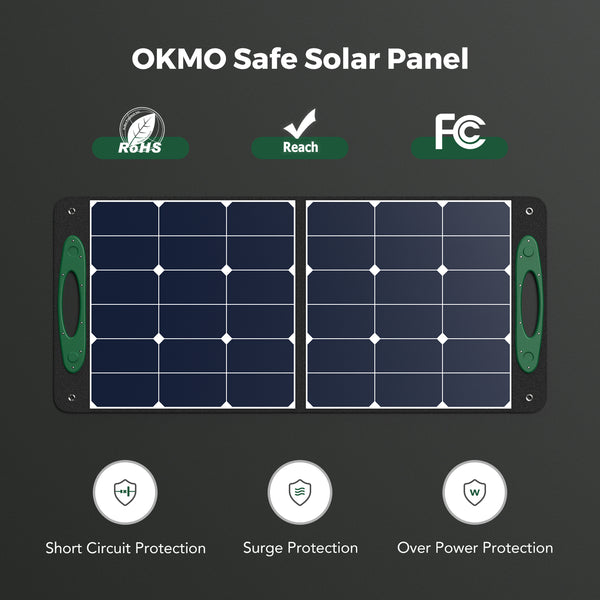 - WHAT'S INCLUDED: 1 OKMO OS100 100W solar panel, 1 user manual, 1 warranty card and 24 months of friendly, professional, 24/7 customer support. Tips: In order to achieve the best results, we recommend using OKMO solar panels with OKMO solar generators. We are not responsible for any damage to third-party products